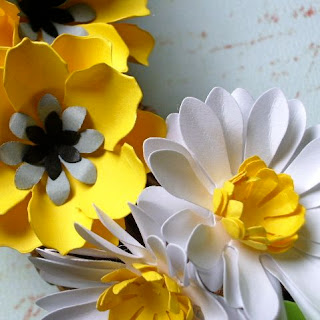 My husband has been after me for a while now to put my paper flowers on stems so I can make bouquets...Last Thursday I went to Micheals and I bought all that I need to do so! With a couple of tricks from a professional florist...I took the plunge and made a bouquet! And another one and a third! I'm very proud of my first trials! I'm confident with more practice...There will be nothing to stop me!
